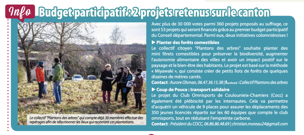 Gracias a los Presupuestos Participativos Dordoña 2019, tenemos plantado más de 6 bosques comestibles en la Dordoña